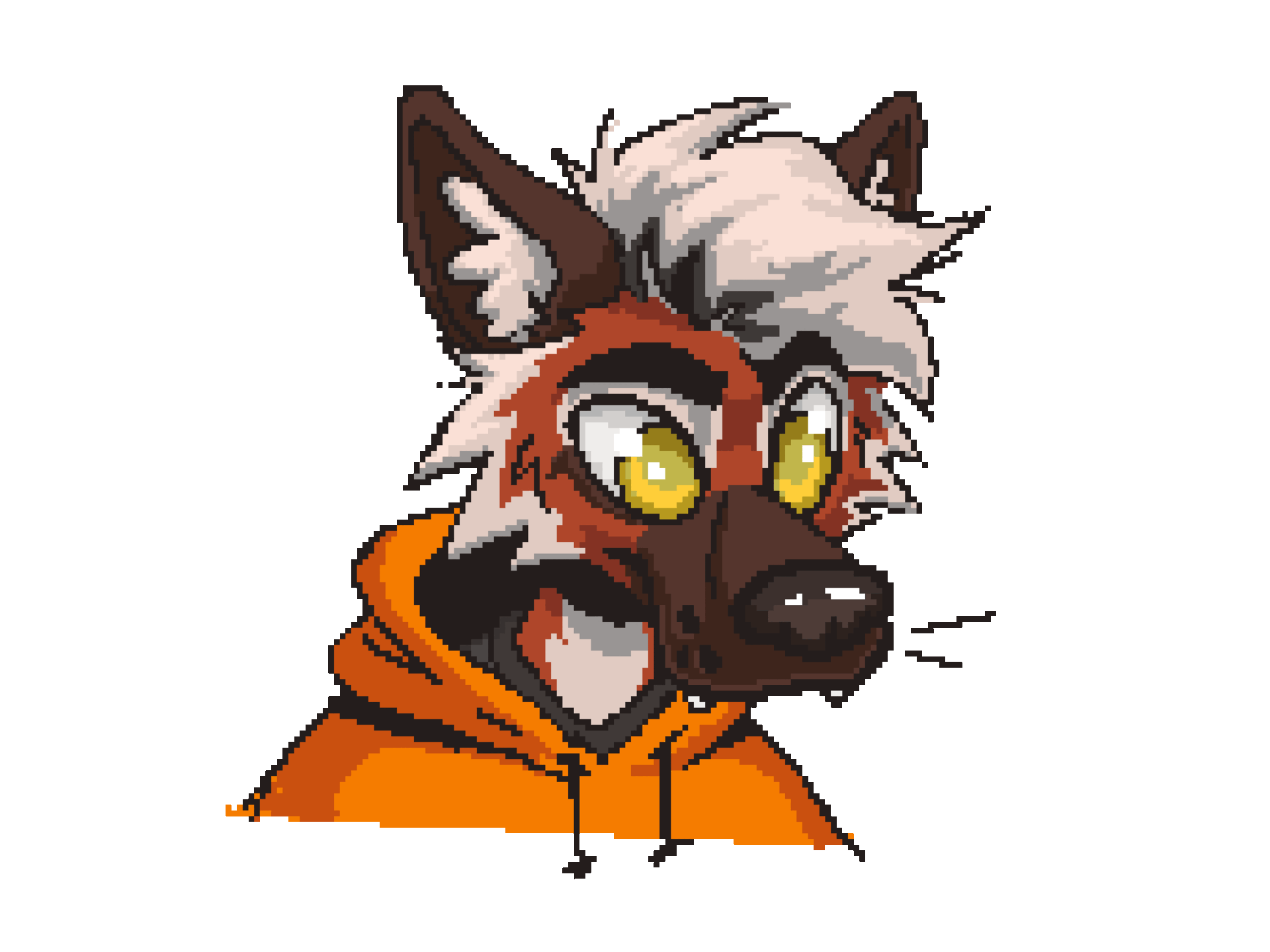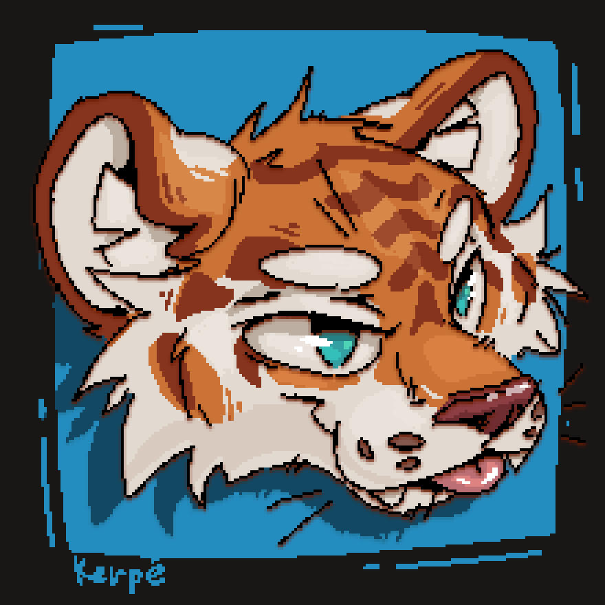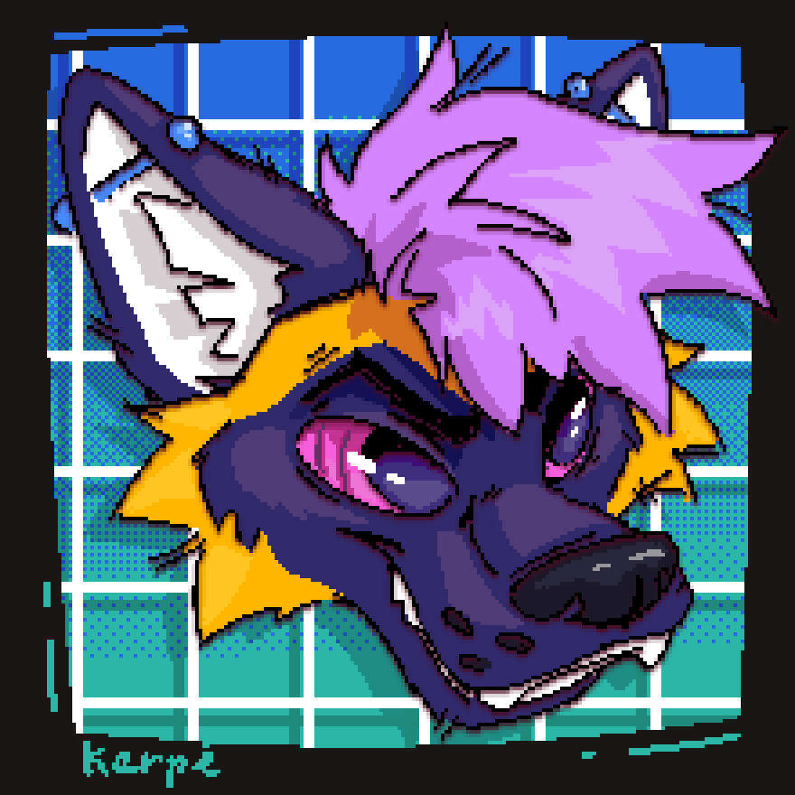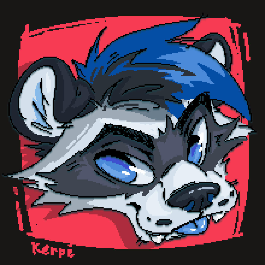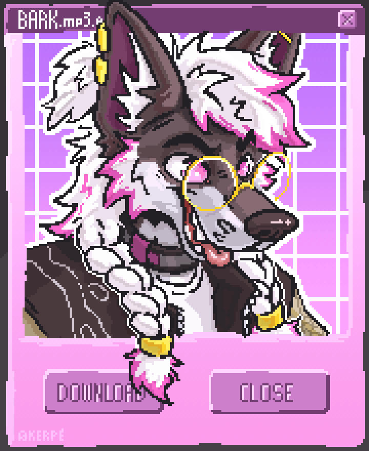 - Pixel bust of your character, in the style of a computer pop-up;